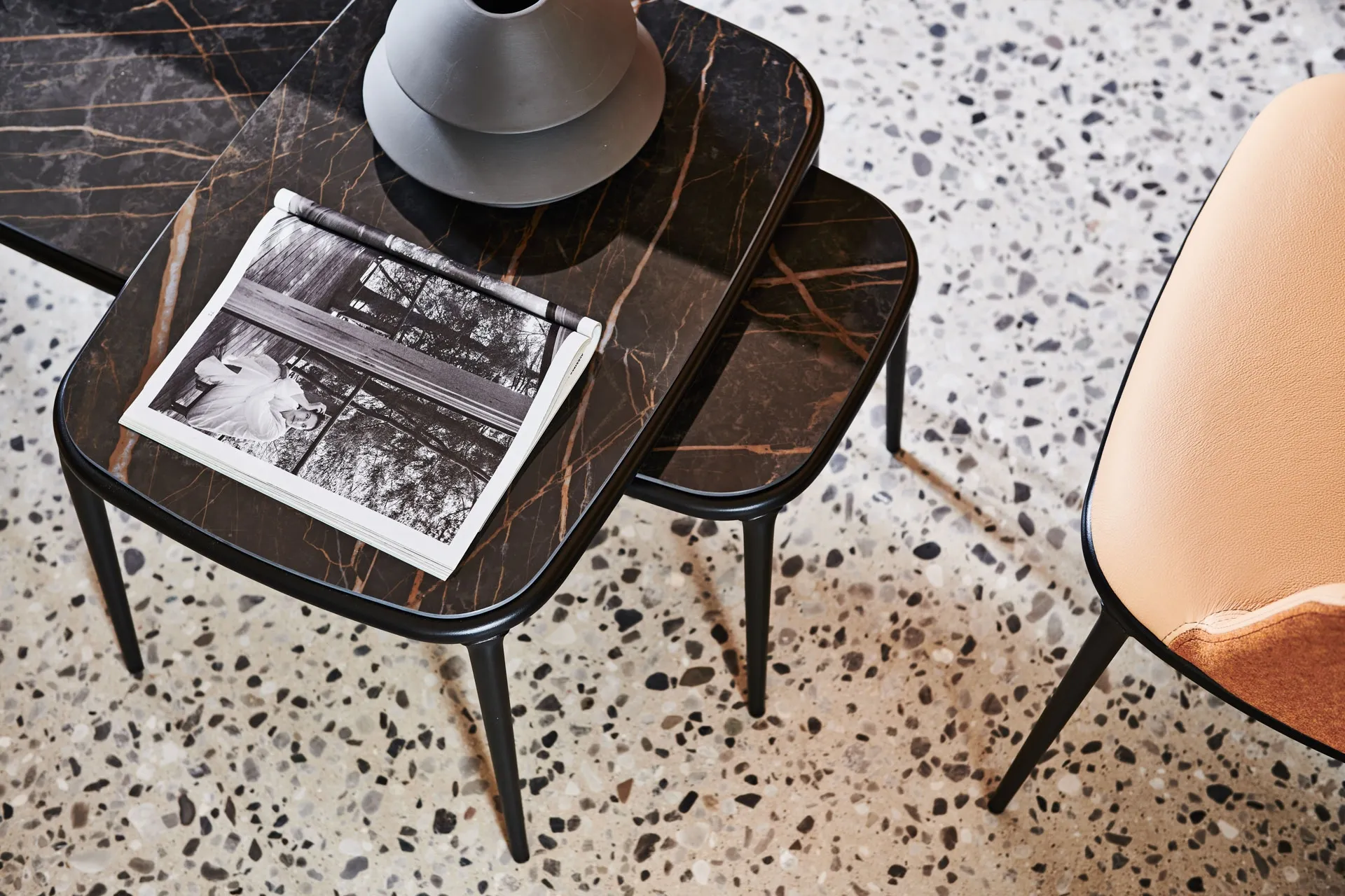 I nostri designer di interni ti affiancheranno nella selezione di un buon modello di tavolini, affinchè possa completare le doti di praticità e l'estetica del locale. Complementi e tavolini moderni aggiungono grande valore all’arredo delle nostre abitazioni e si rivelano plurifunzionali oltre che belli da vedere. Come coordinare i Complementi all’arredo? Con molteplici proposte di Midj avrai a disposizione tonalità e finiture per esprimere la tua fantasia arredativa. Tavolino Lea di Midj in ceramica: si fa spazio nei locali domestici dai richiami moderni, unendo alla perfezione grandi doti di funzionalità e stile.