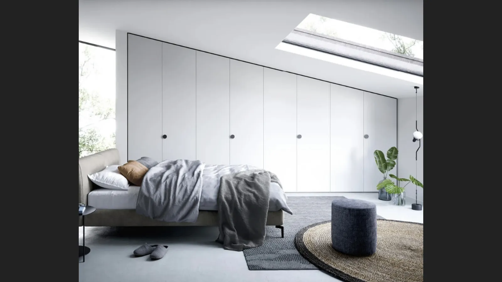 Modello Alfa per Mansarda con ante battenti in legno laccato pensato per una zona notte dai richiami moderni: scopri le soluzioni per mansarde