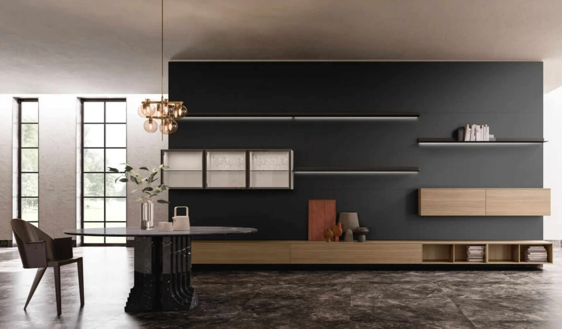 Un po’ librerie, un po’ contenitori ed espositori: le Pareti Attrezzate sono ideali per arredare uno spazio pratico e operativo. La Parete Attrezzata SpaceMakers day SM2225 di Zalf nell'immagine, con finitura in melaminico, risolve le più particolari esigenze abitative di spazio e stile senza rinunciare alla ricerca estetica. Se cerchi arredi salvaspazio e realizzabili su misura, contattaci e scopri di più sull'Arredamento Casa dei migliori produttori. Questa soluzione costituisce tutta la qualità che il marchio garantisce grazie a pluriennale competenza e grande passione nel settore dell'arredo e del design.