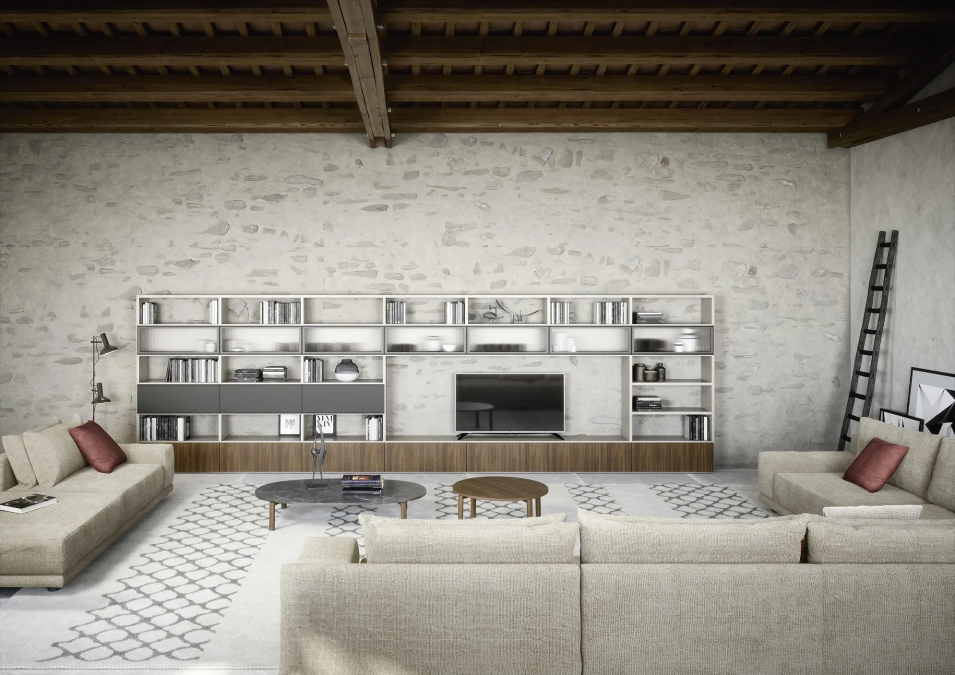 Le Pareti Attrezzate hanno conquistato un posto fondamentale nella zona giorno delle nostre case: sono arredi multifunzionali e salvaspazio sempre realizzabili su misura. Attraverso un gioco dinamico di accostamenti fra elementi a giorno o vani chiusi, le Pareti Attrezzate moderne arredano il living valorizzando ogni spazio. Questa parete attrezzata è una delle soluzioni del marchio e ti permetterà di allestire il living seguendo le più particolari esigenze abitative.