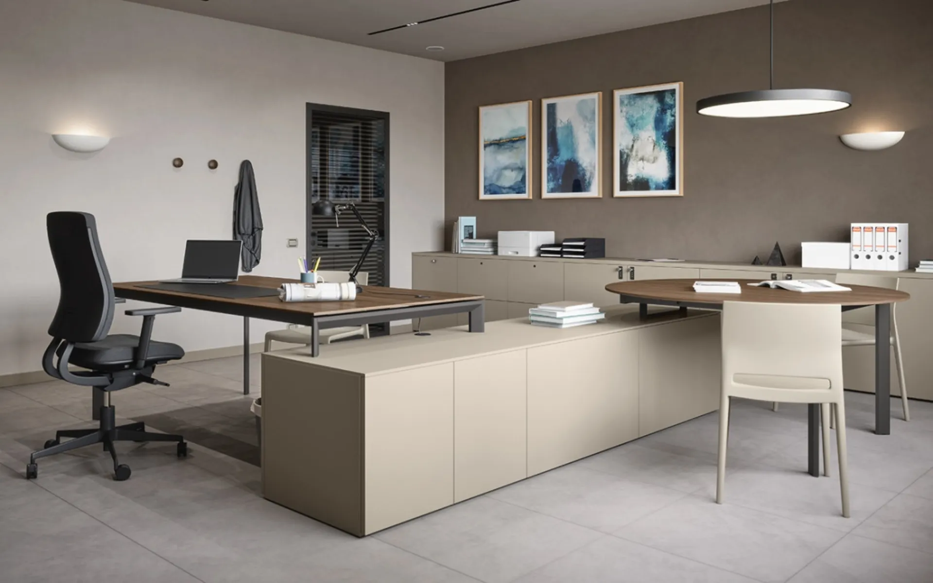 Scrivania Operativa rettangolare e rotonda 03B di Cinquanta3: fa parte della gamma praticamente infinita di mobili per gli uffici del brand, leader nel settore dell’Arredo Ufficio. In showroom potrai visionare in prima persona tutte le più esclusive composizioni di Arredo Ufficio in melaminico disponibili in commercio, sempre di grande qualità. La proposta in foto, tra i vari modelli di scrivanie operative firmati Cinquanta3, aggiungerà personalità e eleganza agli spazi, attrezzandoli mixando logica e coerenza. Cinquanta3 realizza mobili di grande qualità, sempre in grado di soddisfare svariate richieste per quanto riguarda sia l'estetica che la praticità.